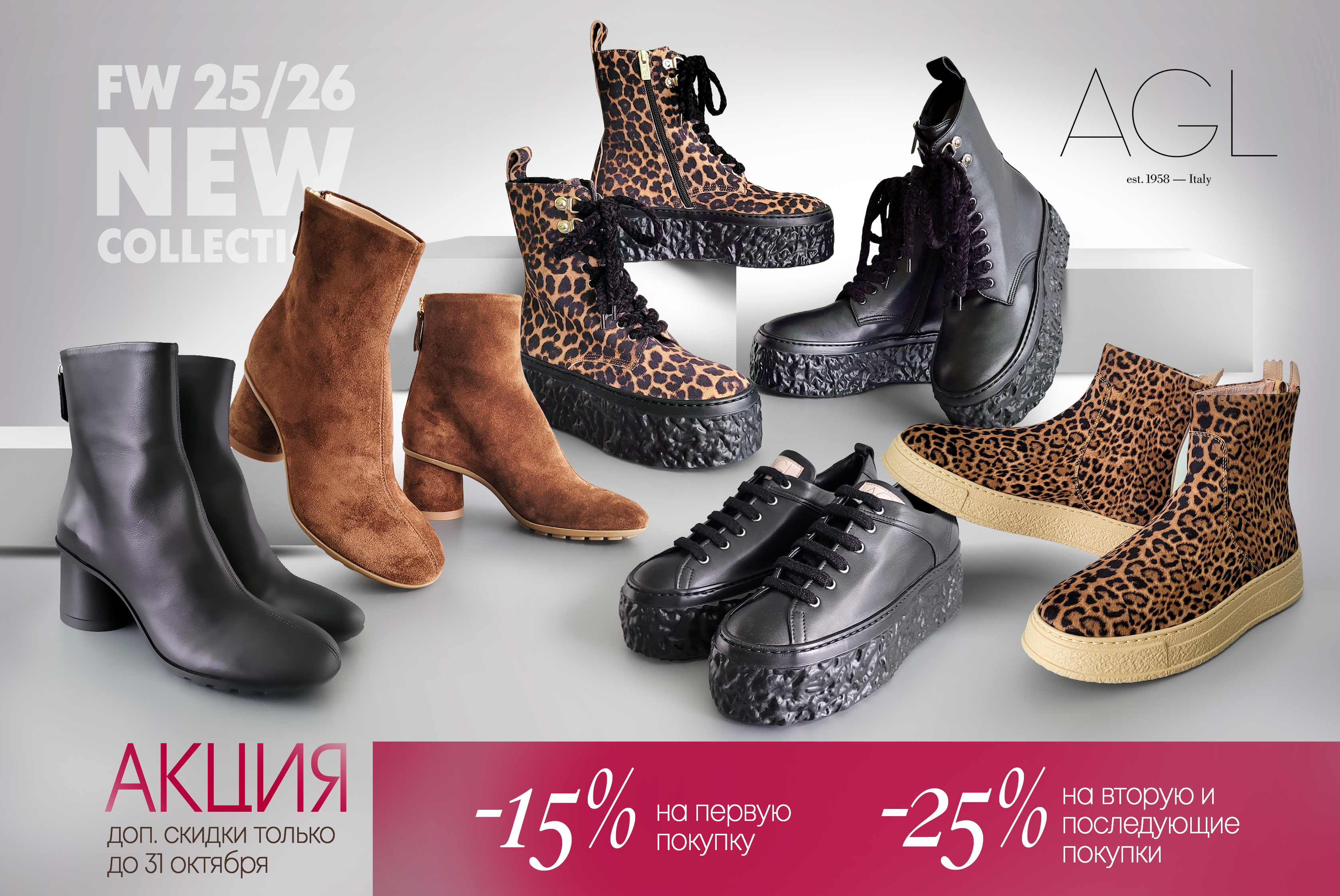- Только до 31 октября! В салонах «ЭЛЕГАНТ» СКИДКИ на FW25/26:-15% на первую покупку в чеке;-25% на вторую и последующие покупки в чеке.* ** На коллекцию прошлых сезонов скидки до 60%:-15% на первую покупку в чеке;-20% на вторую и последующие покупки в чеке.** *На кроссовки бренда PREMIATA максимальная скидка 20%. **Первая покупка по цене должна быть выше последующих. На последние пары прошлых сезонов скидка 20%. Мы рады видеть Вас!